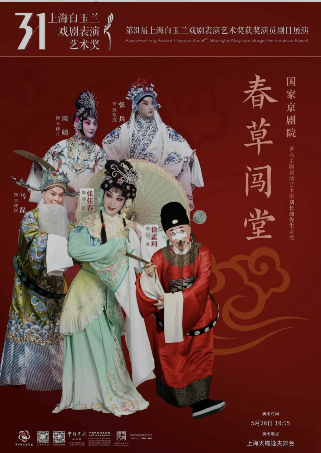 2023年5月26日,京剧梅花奖得主张佳春《春草闯堂》将在上海参加第31届上海白玉兰戏剧表演艺术奖获奖演员剧目展演,时间为晚上7点15分,地点为上海天蟾逸夫舞台。有兴趣者欢迎留言联系~剧票先到先得!